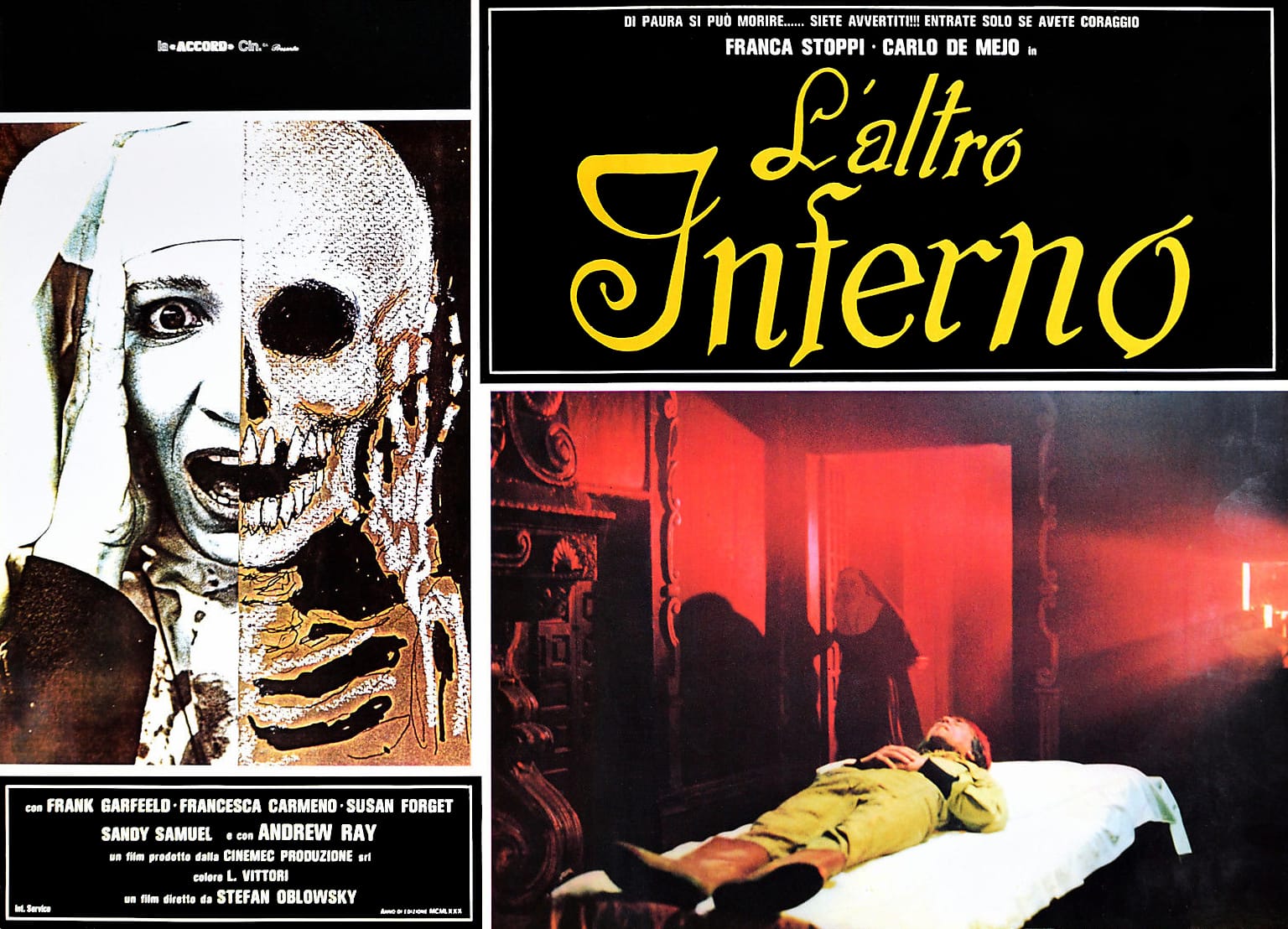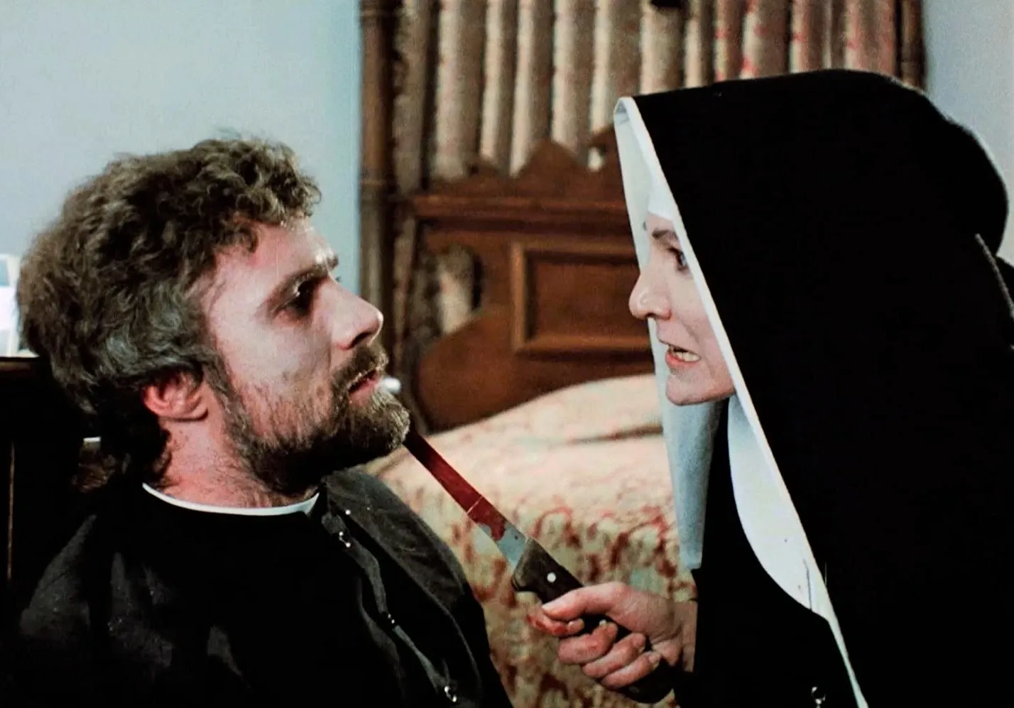 Now granted these movies are all pale/melanoma-level sunburnt imitations of their source material. However, there is something to Mattei's Aldi-brand artistry. By first creating a thin shell that vaguely resembled/plagiarized the source material, he had to then provide the filling. This is where Bruno's directorial idiosyncrasies came into play and things got interesting. That filling is doubly deranged when you consider Mattei's long-time writing partner was Claudio "Actors are dogs" Fragasso. There's definitely a cum joke what with the "filling" bit but I'm pulling a Mattei so just insert one from Last Podcast or whatever. So how did these boys wrangle the sub-genre of Satanic nunsploitation?